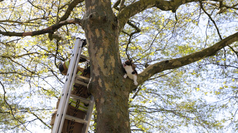 In de boomgrens tussen de Burgemeester Keijzerweg en de J.R. Thorbeckesingel in Papendrecht heeft de brandweer dinsdag 14 april 2026 een kat uit de boom gehaald. De kat, die er al zeker sinds maandagavond 21.00 uur in zat is overgedragen aan de dierenambulance. Toen de kat, na controle, werd losgelaten schoot deze de motorruimte van het voertuig van de Dierenambulance in. De brandweer is vervolgens opnieuw opgeroepen om de kat te bevrijden.