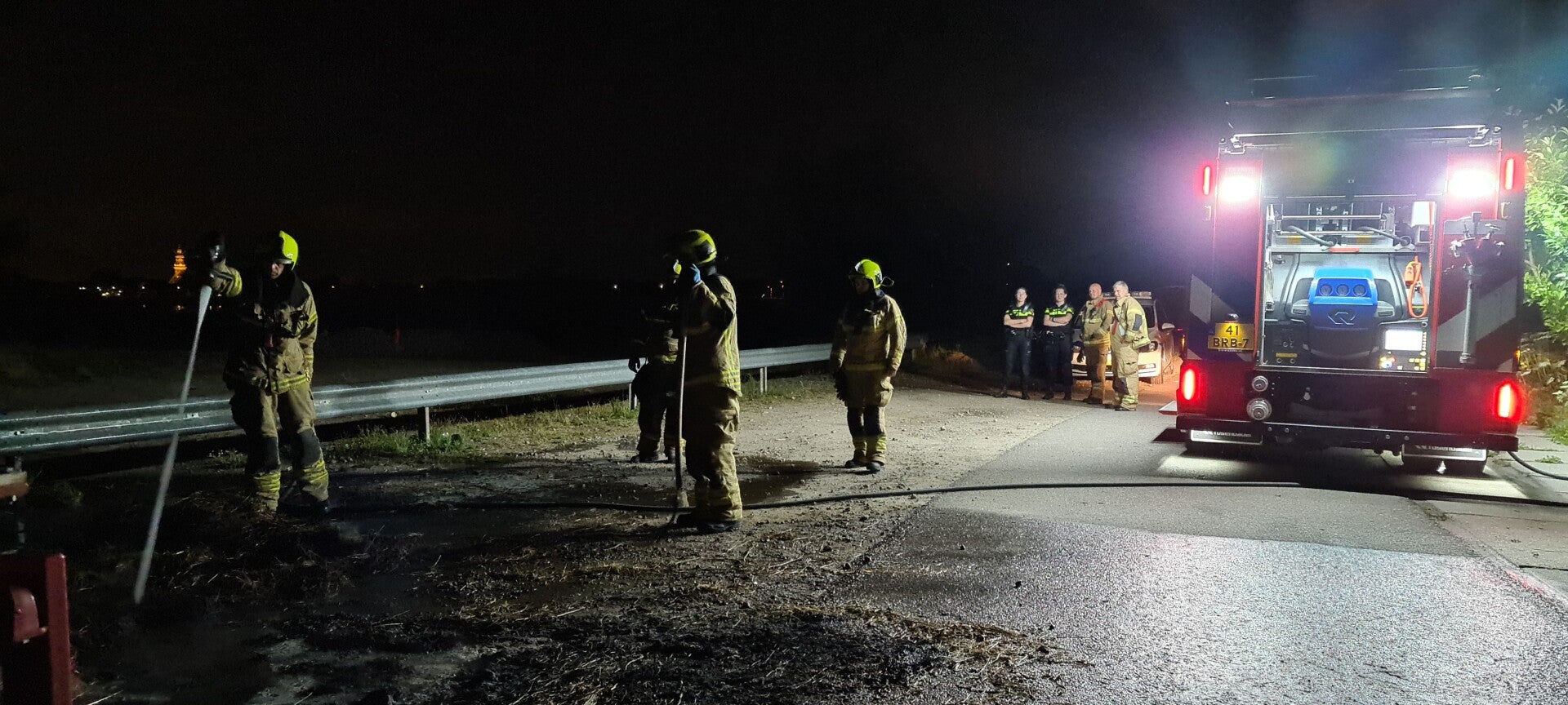 A pile of hay was on fire near the Water Tower. With the help of a high-pressure hose (with which they extinguish) and a pitchfork, the fire was extinguished and the hay separated. Nothing is known about the cause of the fire.