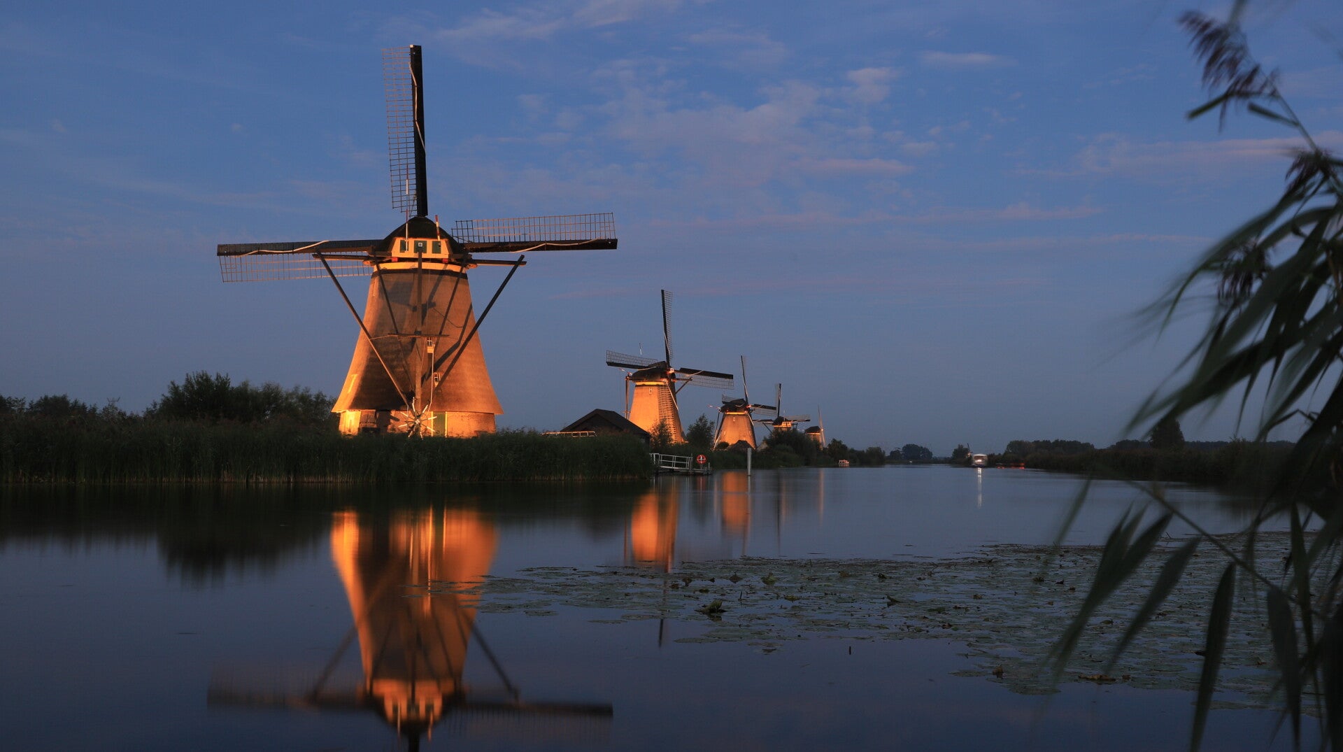 De molens van Kinderdijk en Alblasserdam zijn sinds vrijdagavond 1 september verlicht. Rond 20.30 uur gingen bij de molens, op één na vanwege een defect, de verlichting aan. Mensen konden in het gebied genieten van een magisch schouwspel bij het Werelderfgoed.