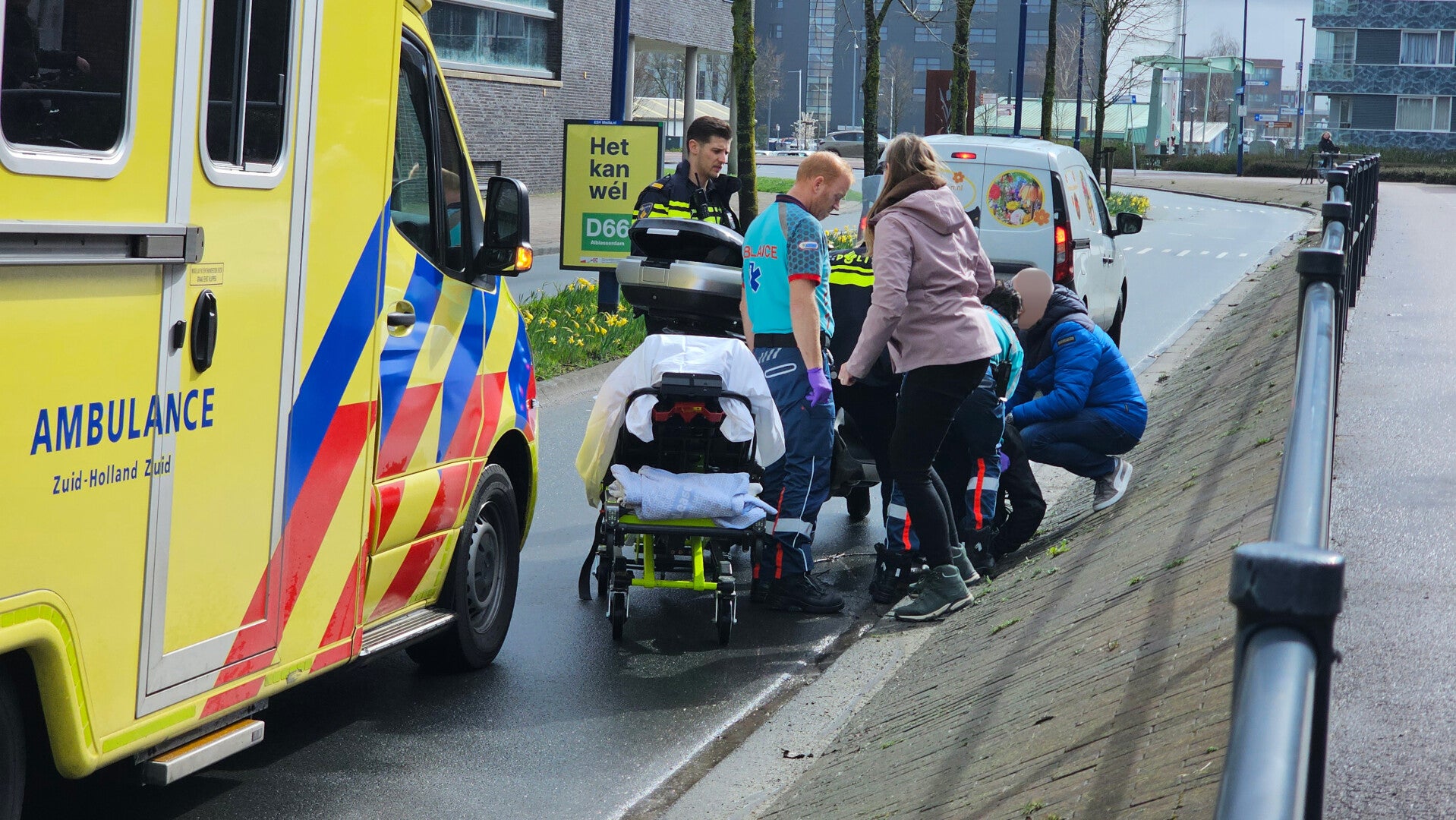 Bij een eenzijdig ongeval op het Cortgene in Alblasserdam is woensdagmiddag 11 maart 2026 een man omstreeks kwart over één gewond geraakt. De man, die met zijn driewiel-motorscooter (motor met 2 voorwielen en 1 achterwiel) ter hoogte van de oversteek plaats Cortgene / Haven reed, ging door onbekende oorzaak onderuit en brak hierbij ondermeer zijn arm. Omstanders schoten de man te hulp en een ambulance en twee politievoertuigen kwamen met spoed ter plaatse. De man is overgebracht naar het ziekenhuis voor behandeling. De motor, die licht beschadigd raakte, is door de politie bij de man zijn thuisadres gebracht. De weg, in de richting van de Dam is enige tijd afgesloten geweest.
