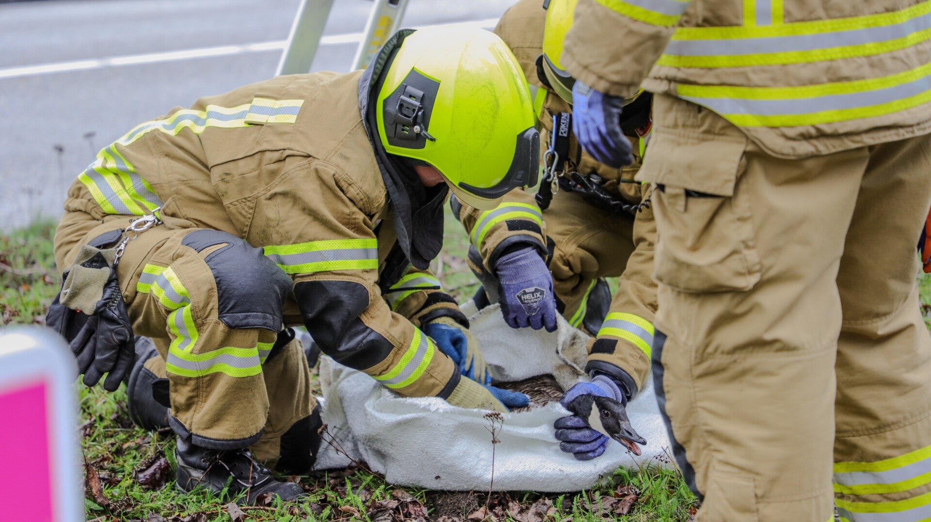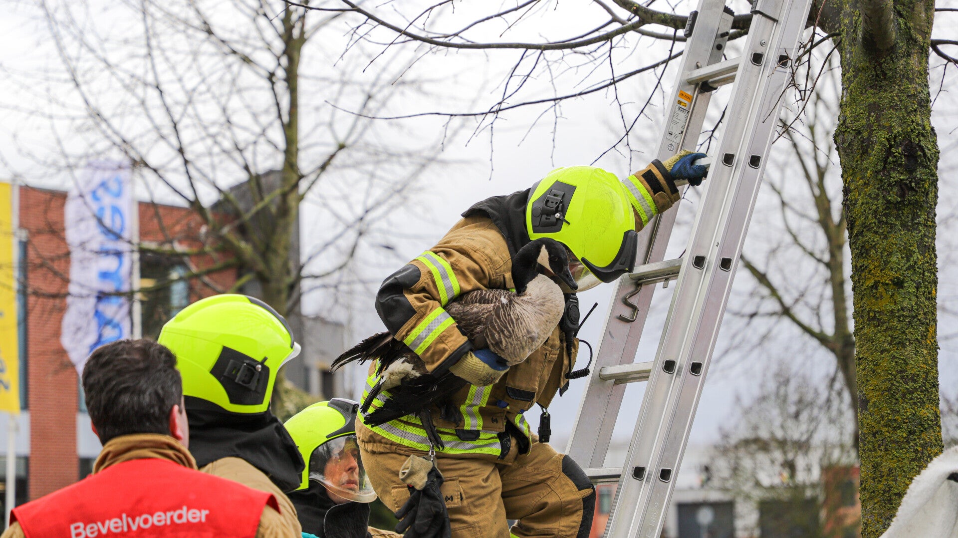 In één van de bomen voor het pand van ASVZ langs de Sportlaan in Sliedrecht is zaterdagmiddag 28 februari 2026 een gans vast komen te zitten. Omstreeks kwart voor drie werd de brandweer opgeroepen om deze te bevrijden. Met behulp van een ladder is de gans, die gewond raakte aan zijn vleugel uit de boom gehaald. De dierenambulance is ter plaatse gekomen om het dier op te halen en hulp te bieden.